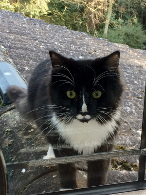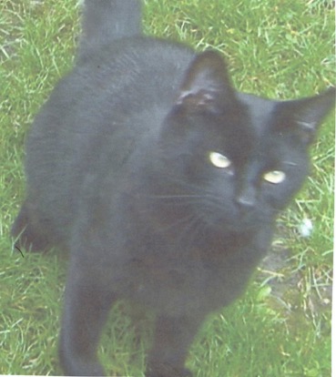 One year old black cat called "Bonkers". Bonkers lives in the Elms Rd
