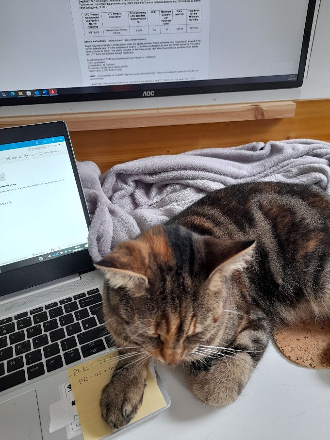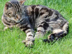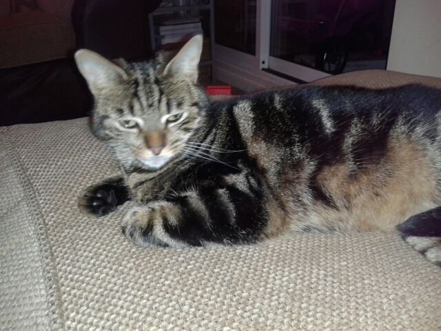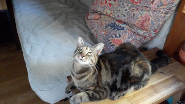 Thursday 17th April. She's a tabby/tortoise shell cat who never really leaves